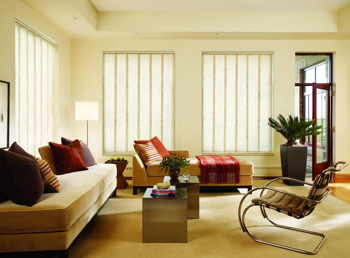 For very large windows or sliding doors, vertical blinds are the most practical choice. Luminette® Privacy Sheers are the perfect combination of the light, airy look of sheers and the elegance of a traditional drapery. The fabric vanes rotate 180 degrees to give you maximum light and privacy control.