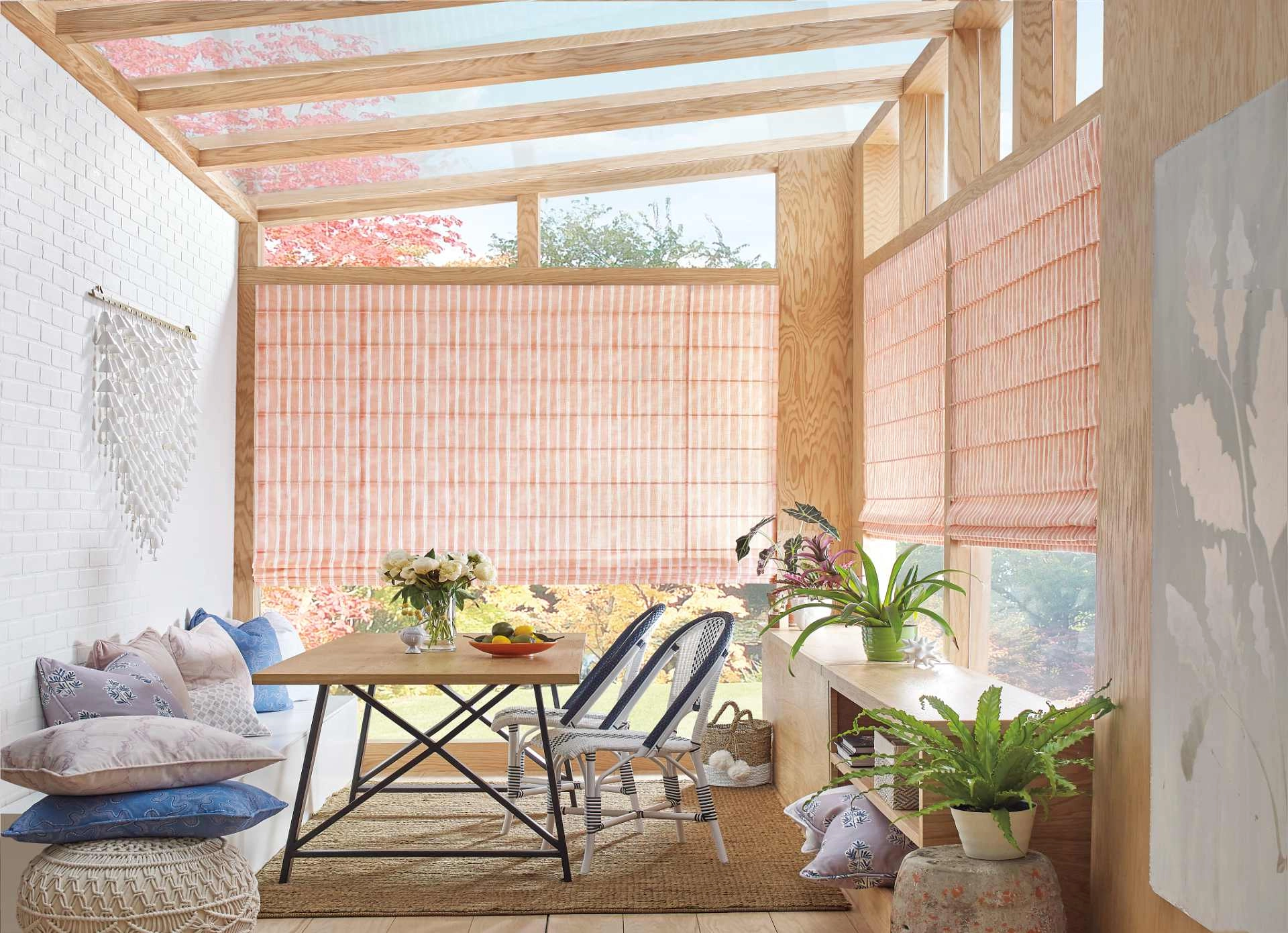 We mentioned pairing soft pink and sage green, but nearly any shade of the two colors can go together. Brighter pinks, like raspberry, are an excellent counter to light lime green. If you go all-in with the colors on the walls and furniture, consider a more laid back window treatment, like Duette® Cellular Shades in a cream or off-white color. Duette® Cellular Shades will also help keep the Florida sunshine from making your home too warm.
